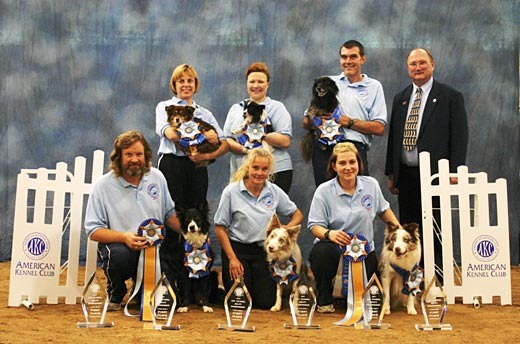 Bred by Patricia Princehouse Owned by Jessica & Ashley Deacon - CA Back Row: 12" Champion - Michelle Beardsley and MACH8 Blue Moon Shine On Willow, Australian Shepherd; 8" Champion - Kimberly Sisak and MACH4 Bomars Beanie Baby, Papillon; 16" Champion - Ashley Deacon and MACH Luka De La Brise, Pyrenean Shepherd; AVP Companion Events, Curt C. Curtis Front Row: 24" Champion - Gerry Brown and MACH3 Wildfires Precious Metal, Border Collie; 20" Champion - Paulena Renee Hope and MACH Sagehill Happily Ever After, Border Collie; 26" Champion - Daisy Peel and MACH2 Jumpstart Maladjusted Jester, Border Collie ![]() "Luka at the Eukanuba Invitational ![]() ![]() Photo credit: Tien Tran ![]() ![]() ![]() 2005 National ![]() ![]() ![]() High Combined Agility 2004 Nationals ![]()