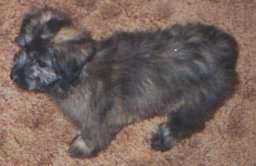 Bred by Patricia Princehouse ![]() Sophie was a promising pup from the moment she was born. She is shown abovet at 6 weeks of age. Her excellent head & expression, and body proportions were clearly evident. ![]() By 3 months, Sophie had started to sprout some serious coat and her black stripes were already turning grey. Although all pups are leggy at 3-4 months, Sophie kept her excellent length of back. It also started to look like her ears would not be the best. ![]() By 6 months, Sophie was regaining the proportions she had as a little pup. Her hair is very long and shaggy ("poil de montagne") and her new ear crop shows off her excellent head. Now if only we can get her to stand still to have her picture taken! |